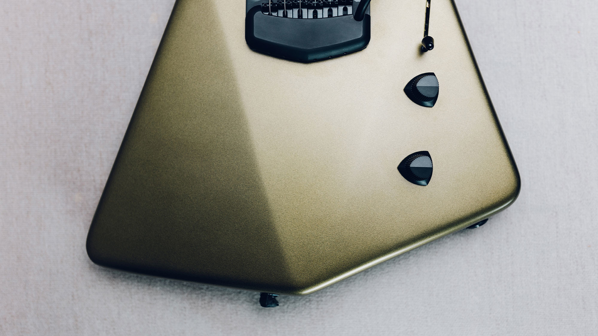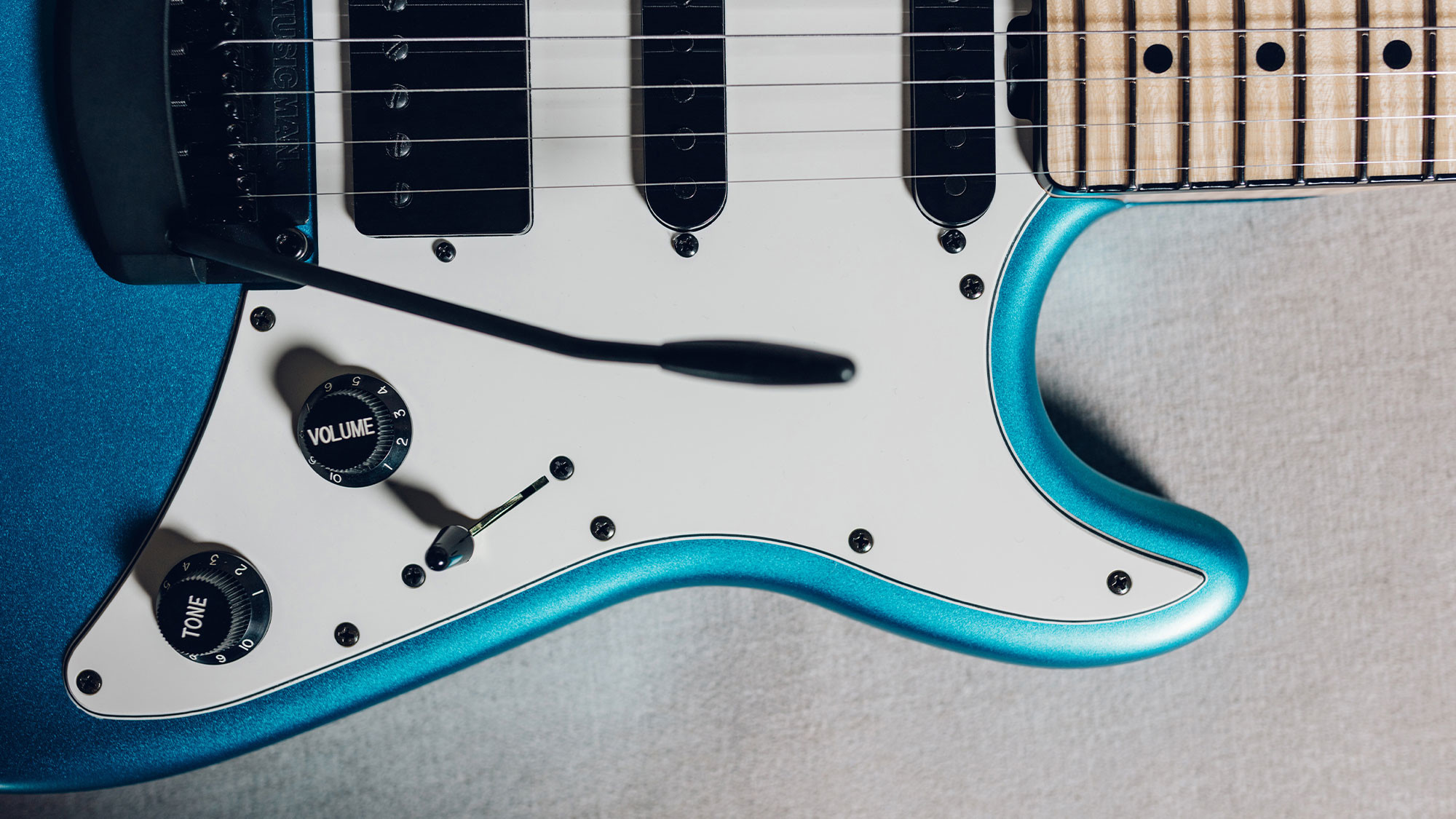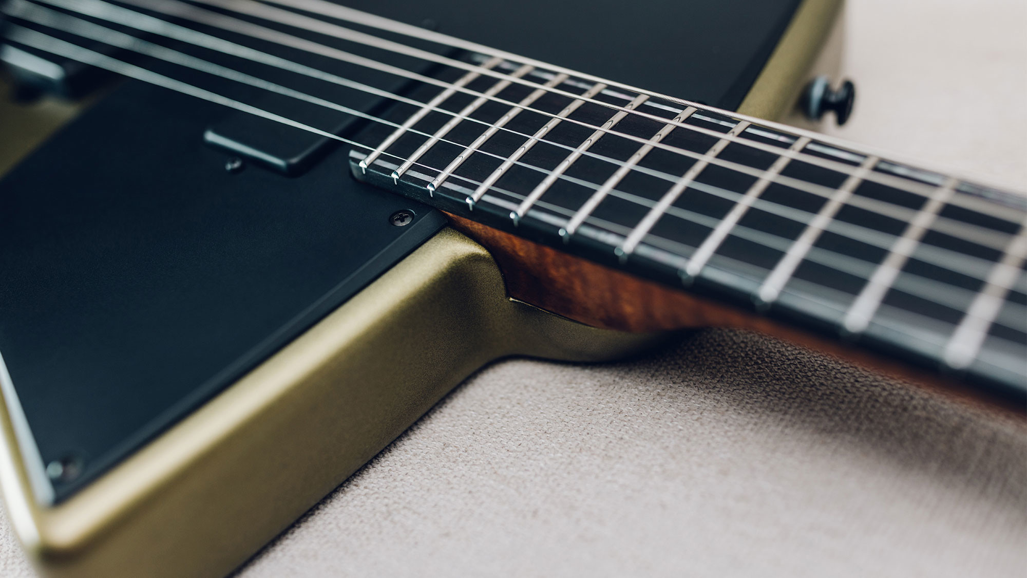 Two strips of pearl inlays replaces the custom STV fret markers.