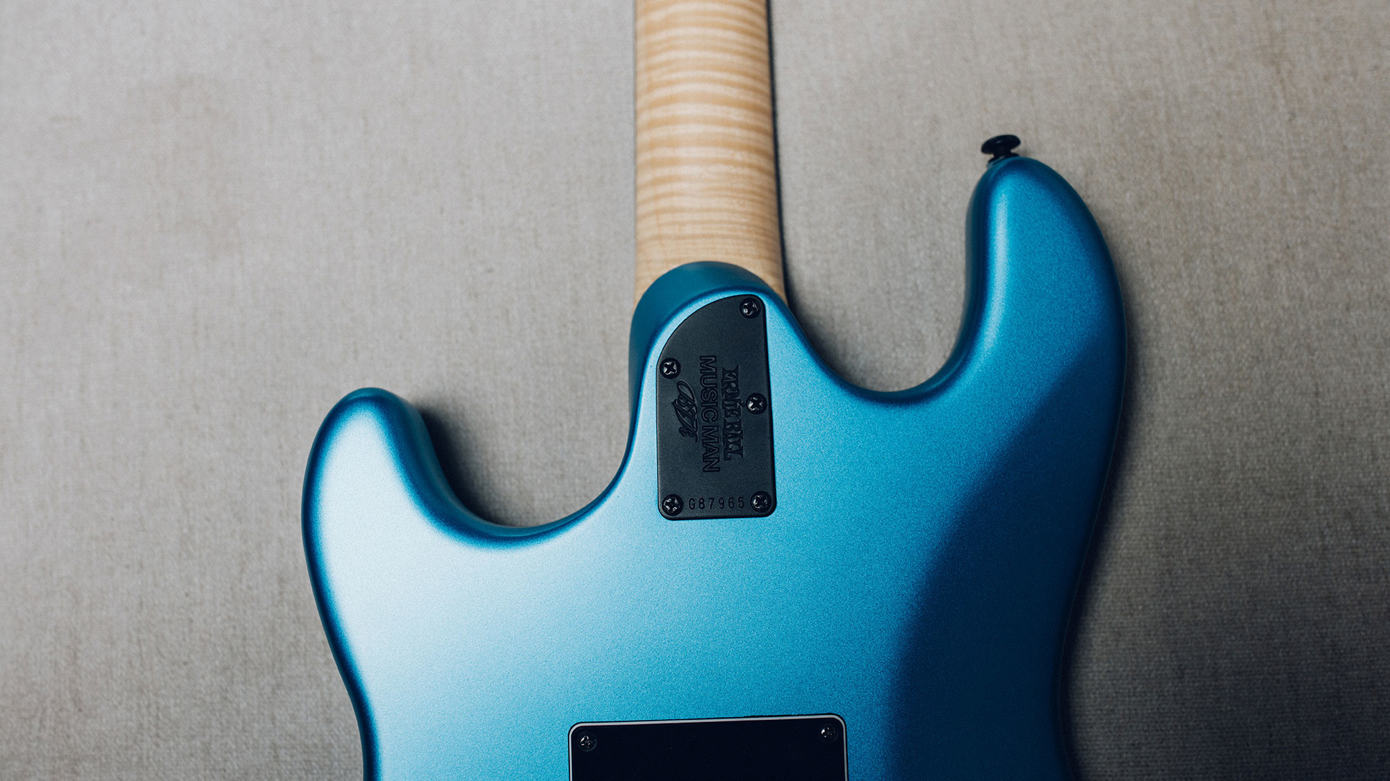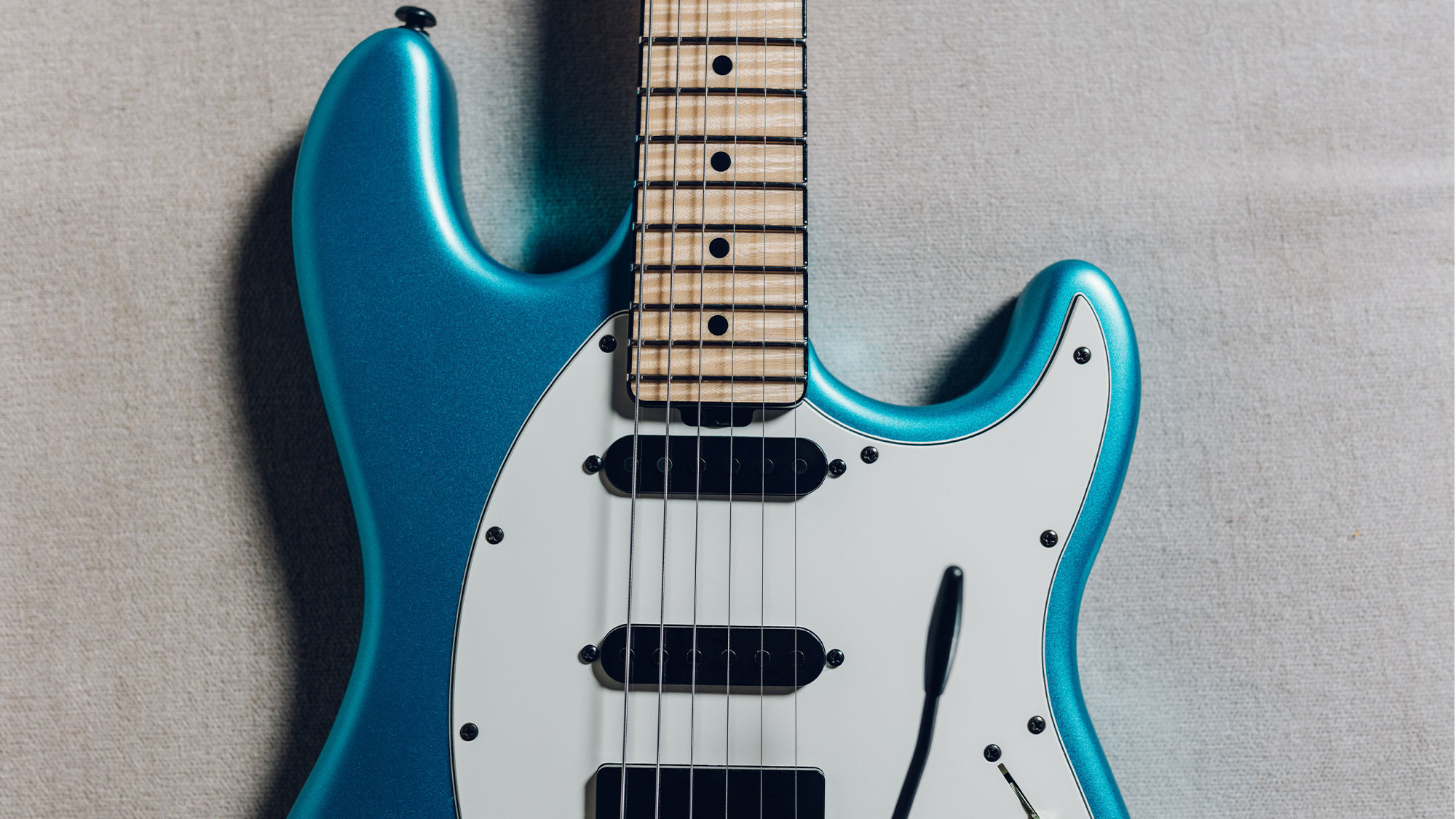 This month features the John Petrucci 15 in Purple Sunset, the StingRay Guitar in Atomic Orange, the St. Vincent HH in Dargie Green 3, and the Cutlass Guitar in Blue Magic.