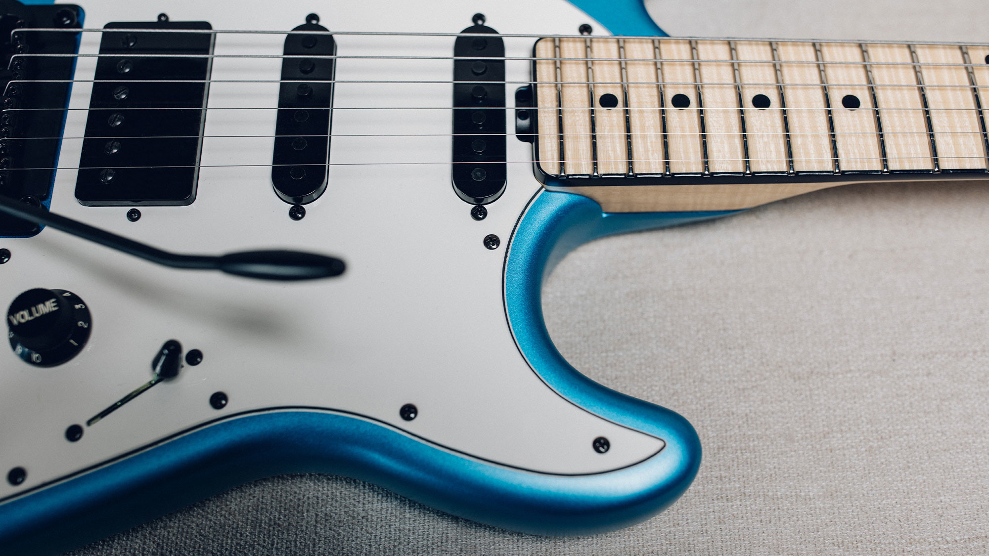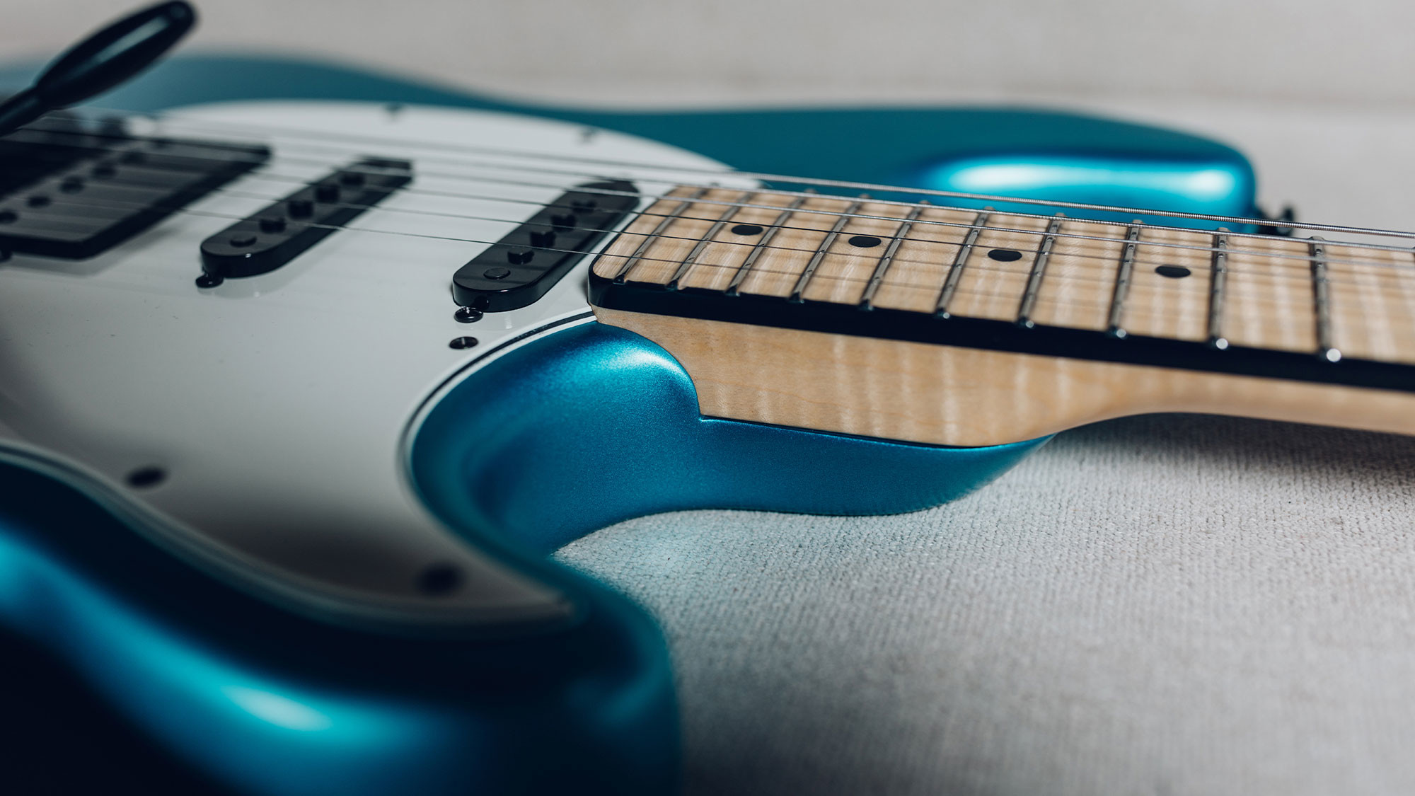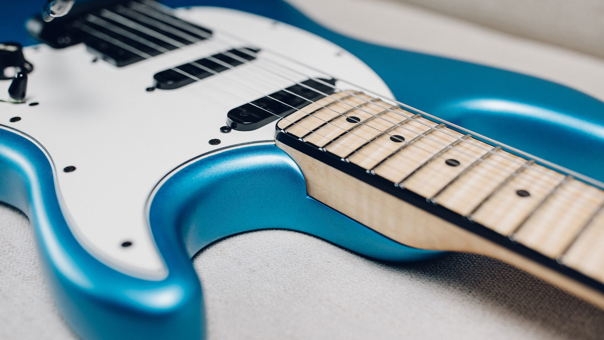 Lightweight alder body is finished with an exclusive matte Blue Magic finish.