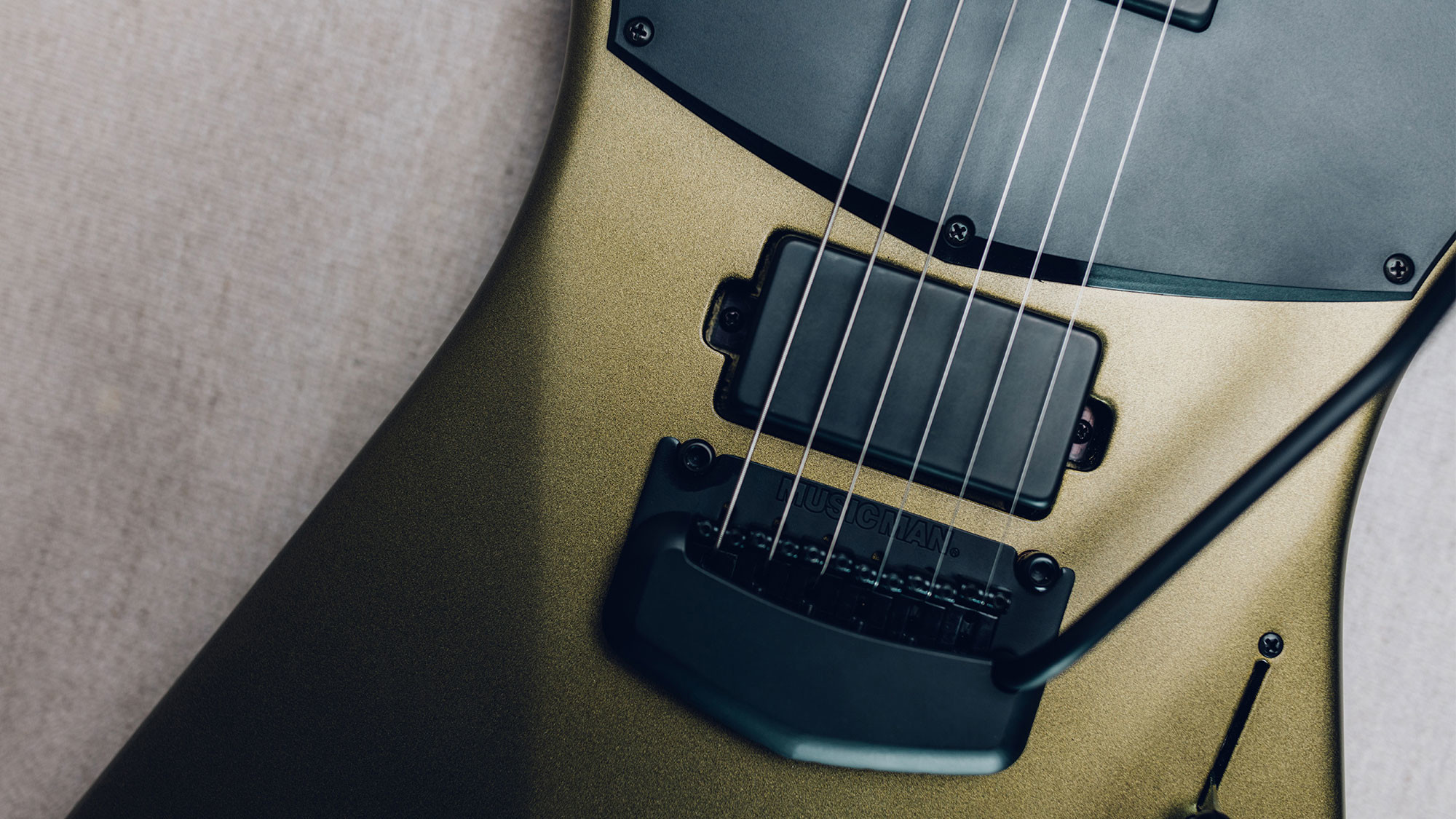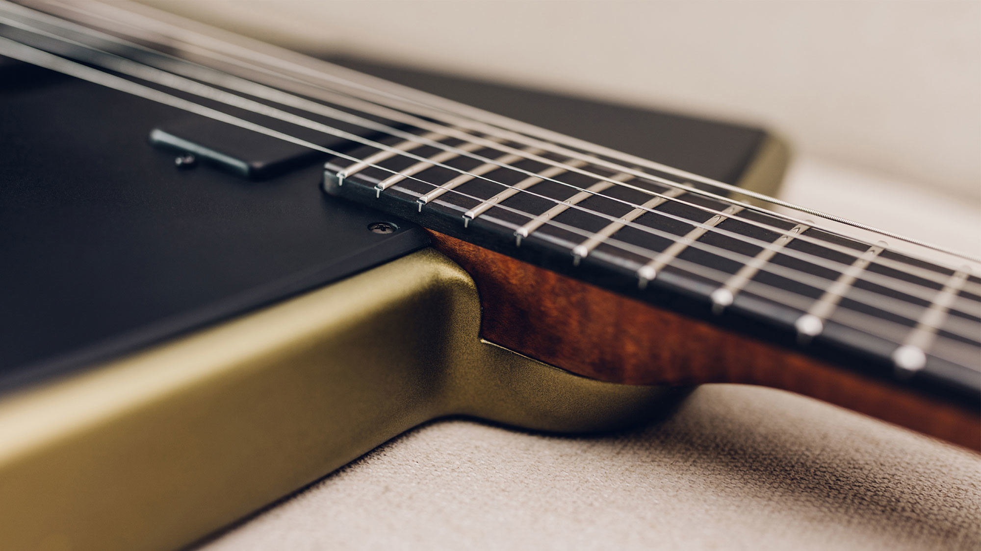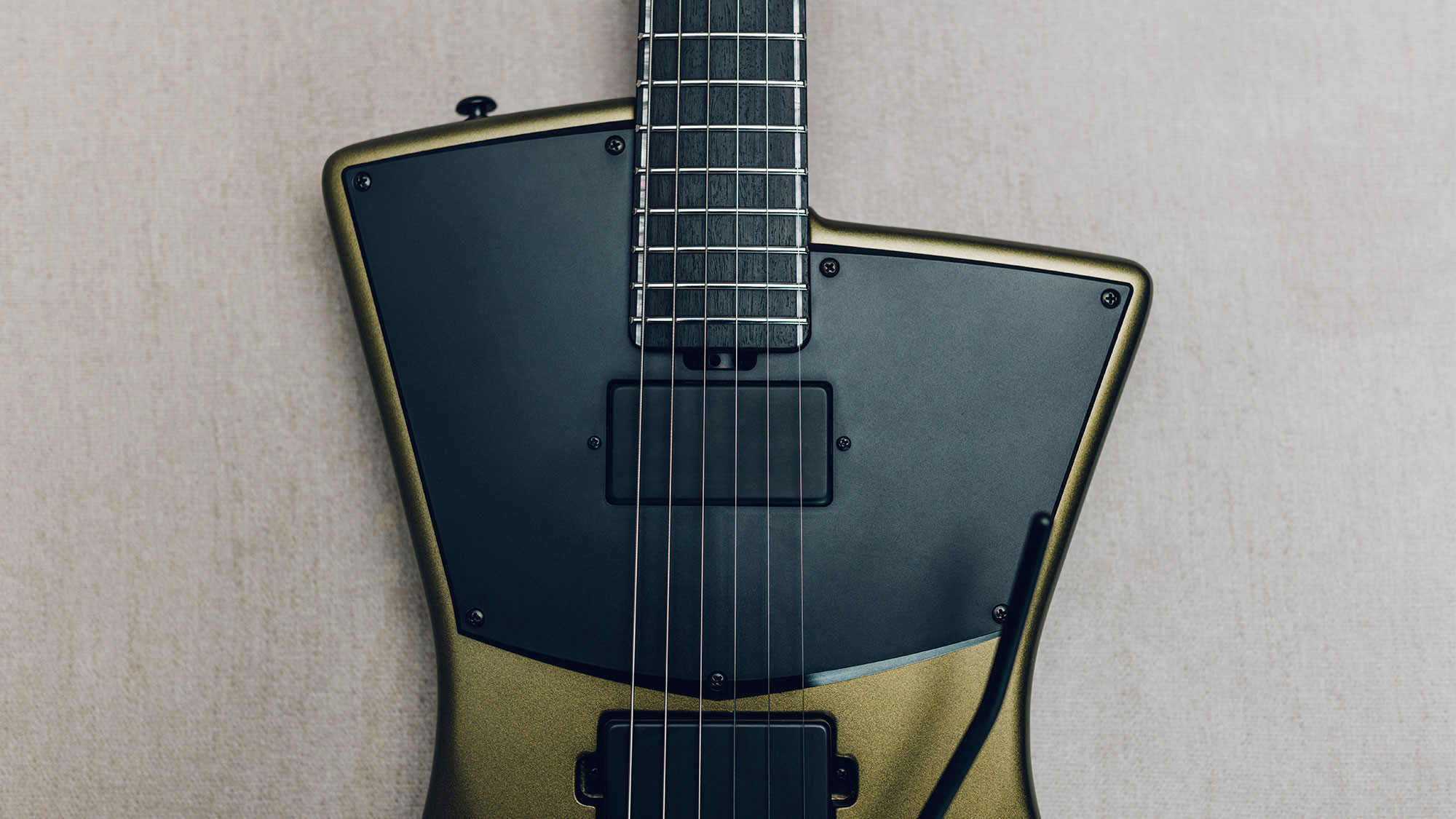 Featuring all black hardware with contrasting parchment pickguard.