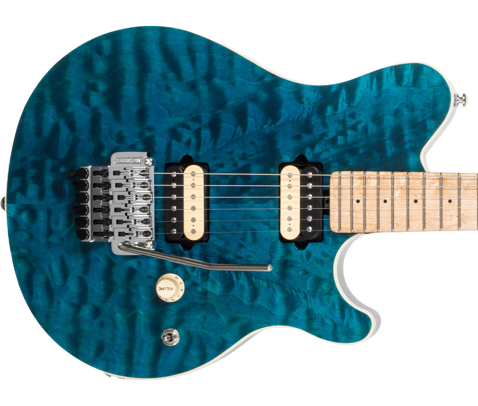Proprietary humbucking pickups are custom designed for the Axis guitar.